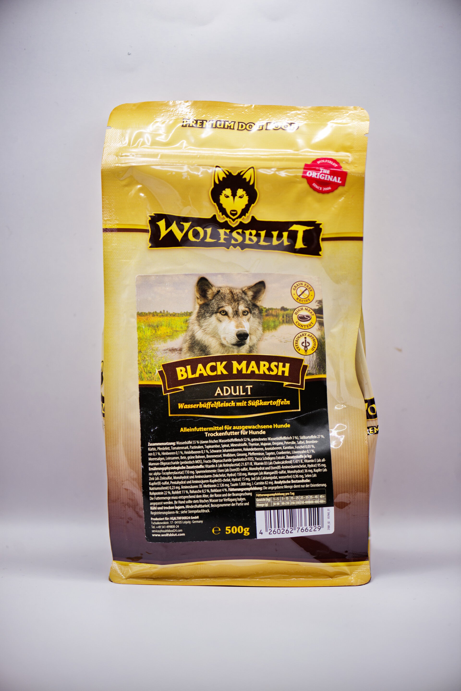 Wolfsblut bietet mit seiner Trockenfutter-Linie Black Marsh Adult ein gesundes Trockenfutter mit schmackhaftem Büffelfleisch, Kürbis und vielen notwendigen Vitaminen und Nährstoffen. Das Hundefutter ist getreidefrei und komplett auf natürlicher Basis hergestellt.